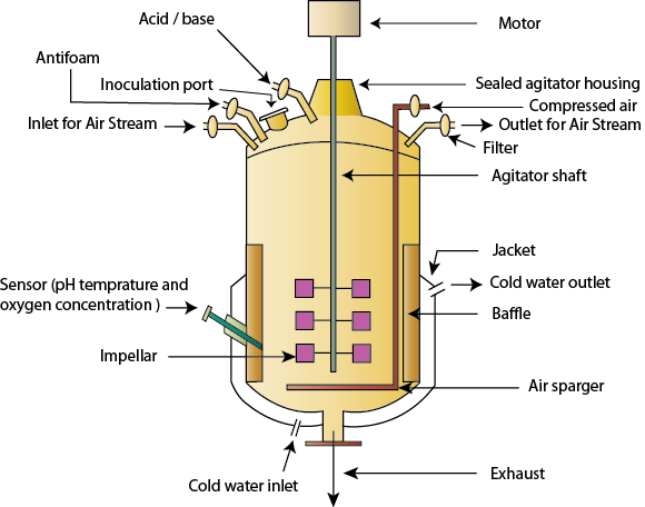 Plant tissue culture is the key method of propagation for a large number of commercially important plants including important vegetatively propagated crops. Over 600 millions plants can be produced in a year by tissue culture methods. Agar culture is the main culture technique generally used for commercial tissue culture propagation. It requires a large number of small culture vessels and labor, and results in the requirement of many laminar-air-flow clean benches, large autoclaves, and large culture spaces equipped with illuminated shelves, electric energy, etc. Thus, it is the cause for both limited propagation efficiency and high production costs. In order to overcome these problems, many attempts for establishing large-scale production of propagules with simple production facilities and techniques have been made including robotics, photoautotrophic cultures, bioreactor techniques, etc. Bioreactor technique seems to be the most promising technique among them in reducing the labour, and providing low production cost, which will be sufficient for establishing a practical system for in vitro mass propagation and commercialization of plants. A bioreactor may be referred to as any manufactured or engineered device that supports a biologically active environment. Bioreactors are widely used for industrial production of microbial, animal and plant metabolites as by allowing large-scale cultivation of cells. A simple diagram of a bioreactor is shown in Figure 36.1.