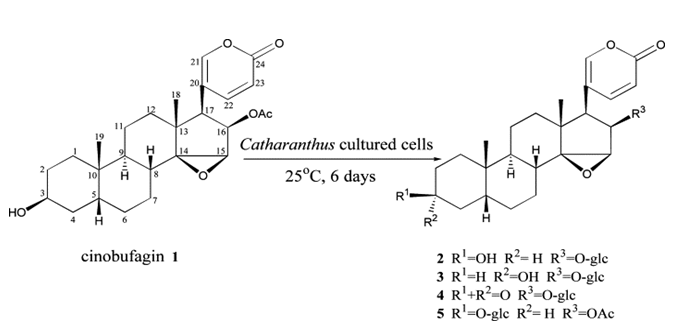 Figure 38.1: Biotransformation of cinobufagin by C. roseus cell suspension cultures