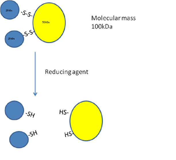 Answer: 25kDa subunits are attached to 50kDa subunits by disulfide bond.
