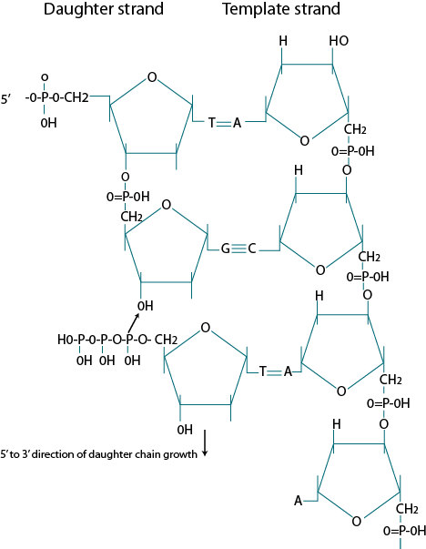 Figure 3. Growing Daughter strand with reference to the template nucleotide.