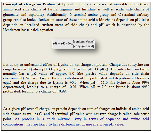 Ion exchange chromatography is a fast, economical and versatile technique for effective separation of ions, amino acids, peptides, nucleotide and nucleic acids etc. This technique is widely used in the pre-fractionation or purification of a target protein from crude biological samples. Before we go in details of ion-exchange chromatography of proteins, let us discuss, ionization and charge on proteins with respect to pH