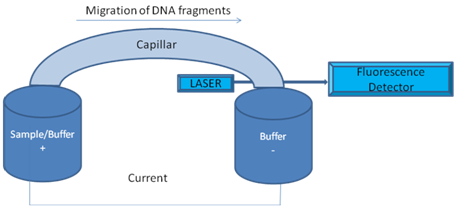 Figure 5B: A schematic representation of basic set up of capillary based DNA sequencing System.