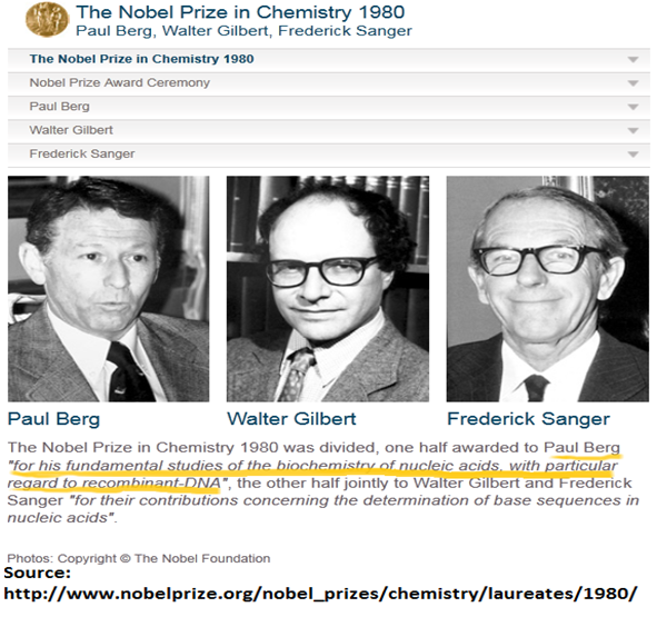 Cloning is making of identical copies. DNA cloning is process of making several identical copy of a gene or gene fragment. DNA fragment from an organism is cleaved or amplified and inserted in a DNA carrier called vector. Vectors are generally double stranded closed circular DNA which has origin of replication through which they can replicate in the host system. Vectors also have a selectable marker (generally antibiotics resistance gene) for screening of recombinant colonies. Vector with desired DNA insert is called recombinant DNA. This can be transferred to suitable host system (generally E.Coli ) where it finds machinery for replication and makes several copies of it (may also express protein). The process is also called recombinant DNA technology or genetics engineering. Recombinant DNA technology is largely based on the work of Paul Berg, Herbert W. Boyer and Stanley N. Cohen although many other scientists have also made important contributions. Paul Berg in 1972, isolated a gene from a human cancer-causing monkey virus (SV40) using a restriction enzyme and joined this virus DNA with a molecule of DNA from the bacterial virus lambda using an enzyme called DNA ligase. This way the first recombinant DNA molecule was created. Later on, in 1980, Paul Berg shared Nobel prize in Chemistry for the work.