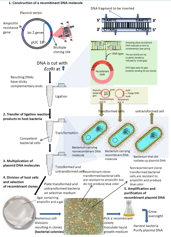 Figure 2: DNA cloning using a plasmid vector. Molecular cloning using a plasmid vector involves five major steps.
