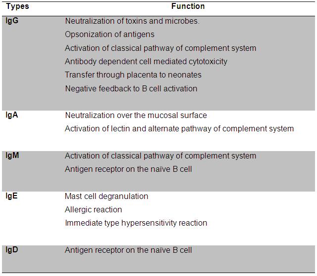 Table27.1 Functions of different antibody:
