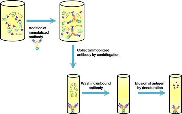 Antibodies can be used to identify and purify specific proteins from a mixture. Two most commonly used methods are Immunoprecipitation and immuno-affinity chromatography. Western blot is another commonly used technique to determine the presence and size of a specific protein.