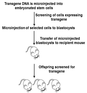 Both the methods are successful only after multiple generations of breeding and selection of the most stable transgenic line. Plasmid DNA containing gene of interest can be coupled with a tissue specific promoter to make it as an inducible system. Cytomegalovirus promoter is used widely as a promoter for the inducible system. Alternatively the recombination of gene of interest can also be achieved by Cre-lox pathway.