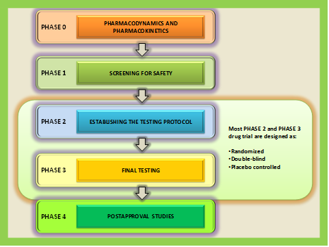 Drug trial has been categorized into five phases as shown in the flowchart of drug trial phases below (figure 29.3).