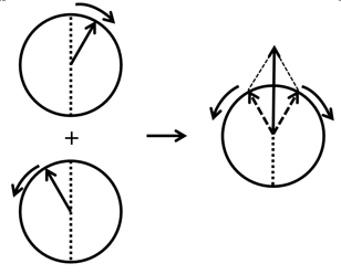 Figure 8.4 Superposition of left and right circularly polarized light resulting in plane polarized light. |