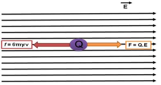 Suppose a charged particle has net charge Q and the external electric field is E, then the force F responsible for giving electrophoretic mobility,