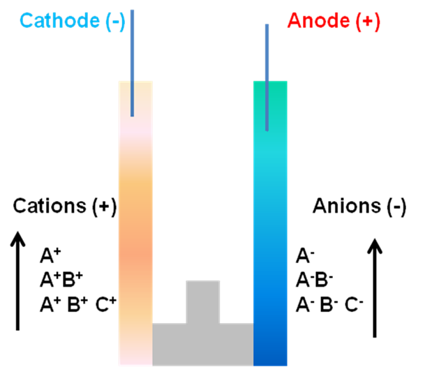 Figure 21.2: Movement of the charged particle in a moving boundary electrophoresis. |