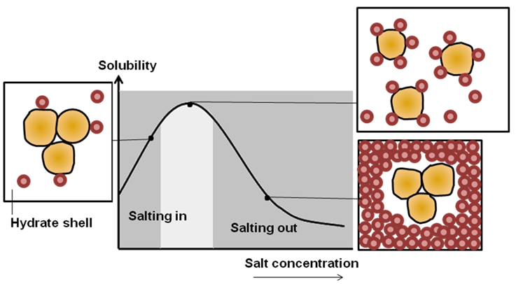 Figure 31.2: Effect of salt on protein, salting in and salting out effect.