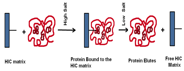 Figure 31.3: Principle of the hydrophobic interaction chromatography.