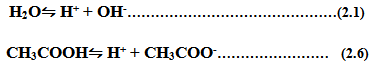 Handerson-Hasselbalch Equation- Titration is the method to determine the content of acid or base present in a solution. In a typical titration experiment, a fixed amount of acid is titrated with a solution of strong base, such as NaOH in the presence of pH indicator dye. The purpose of adding pH indicator dye is to monitor the change in pH during the course of titraton. A typical plot of change in pH against the amount of NaOH added for acetic acid is given in Figure 2.3. In the beginning, acetic acid is present majorly as CH3COOH but with the addition of NaOH, OH- will neutralize H+ to form H2O and promotes further dissociation of acetic acid to give H+ (Figure 2.3). At the mid point of where 0.5 equivalent NaOH has been added, solution has a equal concentration of CH3COOH (proton donor) and CH3COO- (proton acceptor). At the end of titration, all undissociated CH3COOH will be convereted into the CH3COO- .