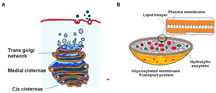 Figure 4.6: Scematic structure of (A) Golgi bodies and (B) Lysosome.