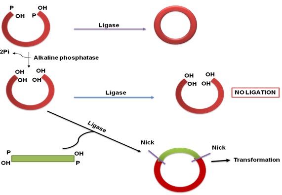 Usage of Alkaline phosphatase in cloning.