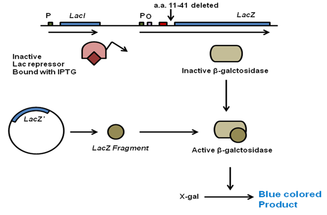Figure 22.1: Molecular Mechanism of blue-white screening.