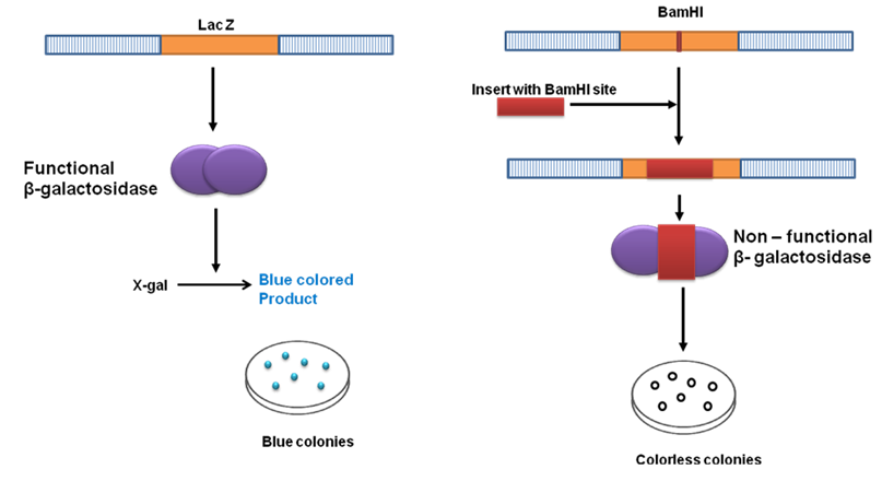 Figure 22.4: Insertional Inactivation of LacZ gene to screen recombinant clone.