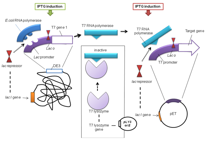 Figure 24.3: T7 Promoter mediated protein production control mechanism in expression host.