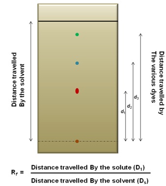 Thin Layer Chromatography Chamber- Thin layer chromatographjy chamber (rectangular or cylindrical) is made up of transparent non-reactive material, mostly glass (Figure 34.2). It is covered from top with a thick glass sheet and the joints are sealed with a high vacuum grease to avoid loss of solvent vapor. All three sides of the chamber is covered with a whatman filter paper to uniformly equilibrate the chamber. A solvent system is filled in the chamber and it is allowed to humidify the chamber with the solvent vapor. It is important for uniform running of solvent front during TLC.