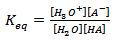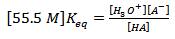 [55.5 M ] Keq is another constant; represented as Ka for the dissociation of acids. The equation 3.4 can therefore be rewritten as: