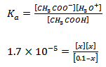 If the acid is <10% ionized i.e. if Ka < 10-3, 0.1–x can be approximate to 0.1. Equation 3.10, therefore, reduces to: