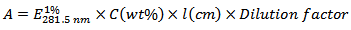 - Measure the absorbance of the 100-fold diluted lysozyme solution against 0.1 M KCl at 281.5 nm