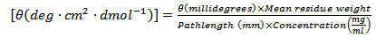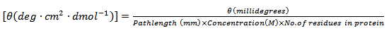 - Calculate the mean residue ellipticity, [θ] in deg · cm2 · dmol -1 at each wavelength using following formulae: