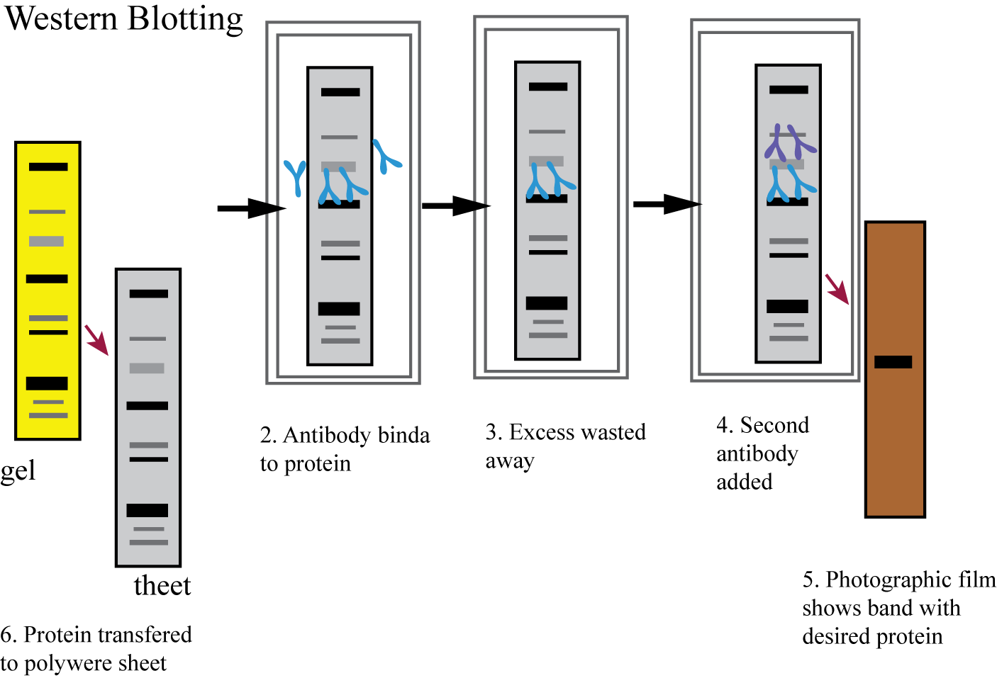 Background Information: The western blot is a popular technique to detect the specific protein present in the crude lysate or homogenate. It uses the separation of different proteins in the gel electrophoresis (preferably SDS-PAGE) and then the transfer of protein onto a solid support such as nitrocellulose membrane. A primary antibody direct against protein of interest and then a secondary antibody is used to detect the primary antibody and gives either colored or chemiluminescent signal.