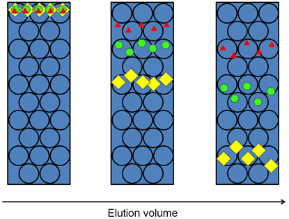 Figure 23.2: A diagram showing separation of molecules based on size in a gel filtration column |
