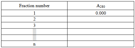 Table 23.1: Table for recording absorbance of collected fractions |