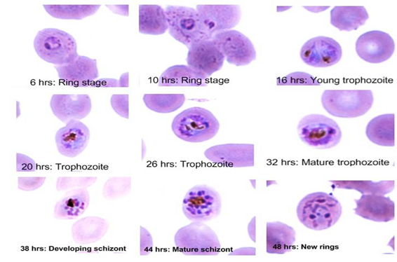 Figure 30.4: Different stages during intraerythrocytic life-cycle of malaria parasite.