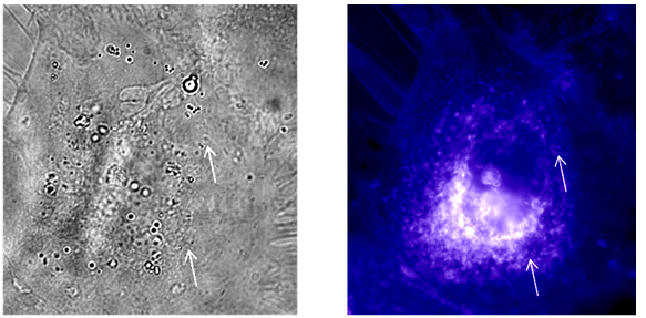 Observation: Observe the cells in the bright field and look for the beads on the cells. Observe the cells in the fluorescence microscope with UV filter.
