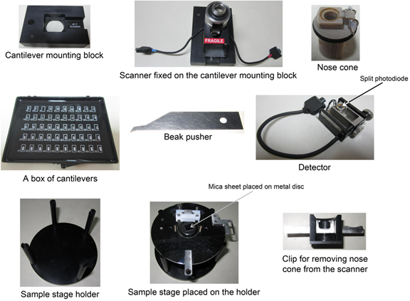 Figure 36.5 Components and accessories of an atomic force microscope from Agilent Technologies