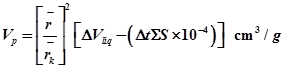 10. Actual pore volume evaporated, Vp. is then determined. Actual pore volume evaporated is composed of the volume evaporated out of the centre core plus the volume desorbed from the film left on the pore walls, For a pore of length L, ![]()