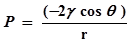 The wetting or contact θ angle between mercury and solid is on average lies in the range 130-1400 and surface tension of mercury is 0.48 N/m2. p is in atm and r in nanometers.