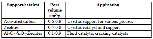 Table 1. Typical pore volume values of different support and catalyst.