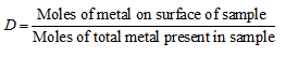 Calculations for determination of metal dispersion and active metal area: