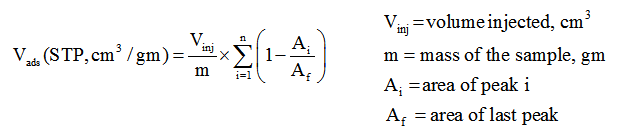 2. The volume of active gas chemisorbed is calculated using volume injected Vinj and from area under the peaks as follows.
