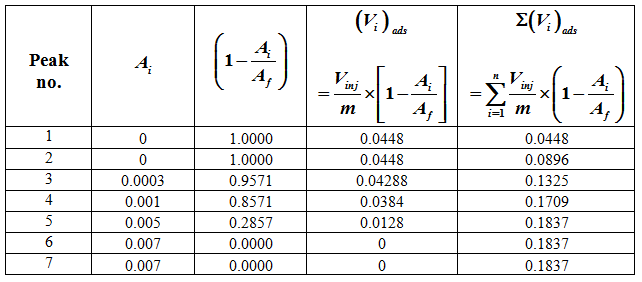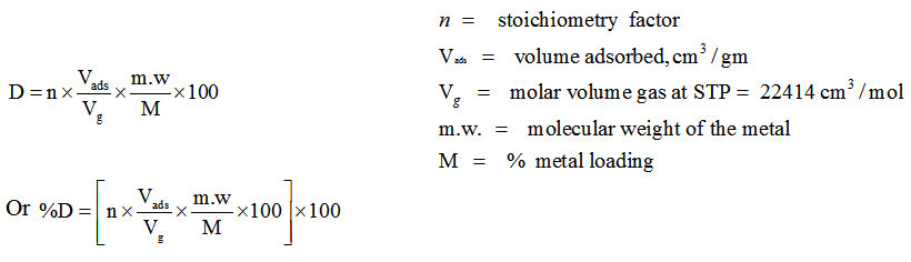Table 1. Calculation for volume of CO adsorbed on Pt supported on Alumina