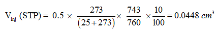 Vinj = volume injected= 0.0448 cm3 ; m = mass of the sample = 1 gm