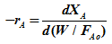 Fig. 2. Typical plot of XA vs W/FA0 for determination of rate from tangent slope in differential analysis of data