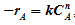 Tangents can be evaluated more accurately by differentiating the equation for best fit of data and evaluating the derivative at various intervals over the data set. Values of –rA versus CA are plotted to determine the reaction orders. For example for an irreversible reactions in which data are fitted by a simple power rate law