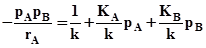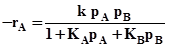 , the value of rate law parameters k, KA, KB cannot be analyzed as simply as in power law kinetics. The rate law parameters can be determined by linear least square or nonlinear least square method. In linear least square method, the above LH rate equation can be linearized by dividing throughout by pA and pB and inverting it as shown below: