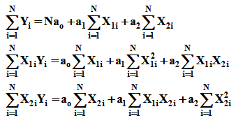 The parameters can be estimated by multiple regression technique using the following equation for N experimental runs. For the ith run:
