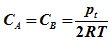 Where ri is the initial rate. Now if a equimolal initial concentration of CA and CB is used then CA= CB. Then assuming ideal gas mixture,