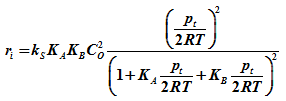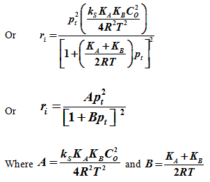 The rate expression derived from Langmuir Hinshelwood model when surface reaction is controlling is