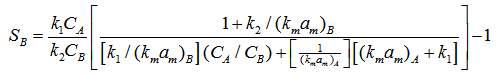 Substituting value of CAS & CBS in SB (10), selectivity can be obtained in term of bulk concentration