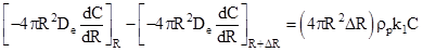 (Rate of diffusion of reactant into element) – (Rate of diffusion of reactant out of element) = Rate of disappearance of reactant within element due to reaction