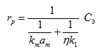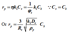 Thus external effect can be treated as a separate additive resistance. The reduction in rate due to internal diffusion resistance through η is combined with rate constant k for chemical steps.